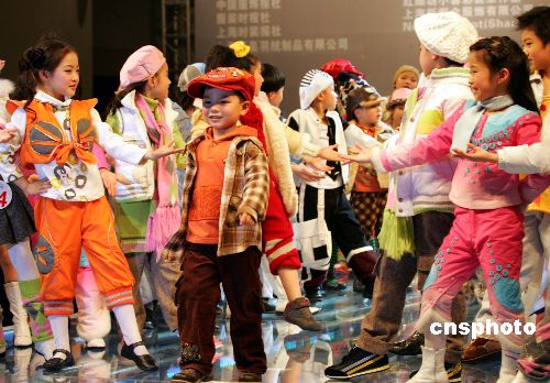 三月十八日晚, “中华杯·博士蛙”国际童装设计大赛总决赛在上海举行,这是目前中国唯一的专业性的童装国际赛事,吸引来自三十九个国家和地区的三百个系列作品参赛,最终有二十五个系列作品入围总决赛,许多作品突现童装“天真、俏皮”的特点。图为上海的小模特在表演设计师们的大作。作者:潘索菲