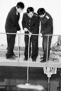 实验室主任蔡志明教授捡起一粒小石子向水池丢去,“噗!”的一声,一圈圈美丽的涟漪在水面荡漾开来。张教授指着涟漪说:“我们把声波在水中的传播称为水声,水声的传播类似于涟漪,不同的是呈球形向外辐射。”雷达应用的是电磁波,电磁波和光速相同,而声波在空气中的速度不过是电磁波的万分之一,为什么舍快求慢,用声波探测水中目标?笔者提出了心中的疑问。