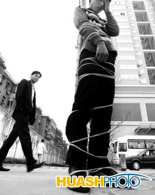 昨日8时许,在西安市西郊一小区上班的李女士进入小区时,发现在大门正对着的道路指示牌杆上,绑着一个小伙子,手脚都被绳子捆着,动弹不得。李女士说:“小伙子眼睛哭肿了,看着挺可怜。”
