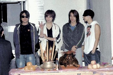此外一连四场“F4Forever4演唱会”昨晚揭序幕,F4四子言承旭(Jerry)、周渝民、朱孝天与吴建豪,昨午抵红馆彩排,现场聚集了韩、日等多地方逾200名Fans守候,众人包围了后台位置,其中一位歌迷,早上9时便抵达红馆霸位一睹F4进入后台。F4步出后台拜神时引起一阵哄动,Fans迫爆后台,尖叫连连,情绪高涨。四子各有拥趸,当中以言承旭的Fans最人强马壮,Fans大叫“Jerry”的声音亦最响亮﹔言承旭以热情回报,兴奋地跳起向Fans打招呼。
