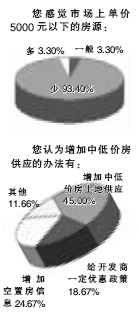 此外,一项对中低价房市场需求的调查显示,9成以上的购房者感觉市场上单价在5000元以下的中低价房源少。(张学冬 刘磊)