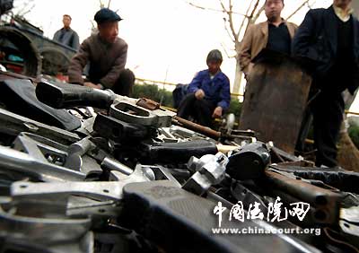 中新网3月23日电 据中国法院网消息,3月22日上午,河南省许昌市公安局举行集中销毁非法枪支统一行动,2000余支非法枪支被陆续投入熔炉,当场销毁。