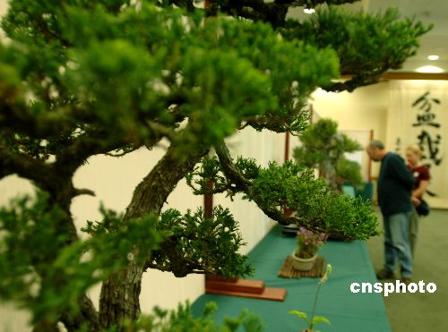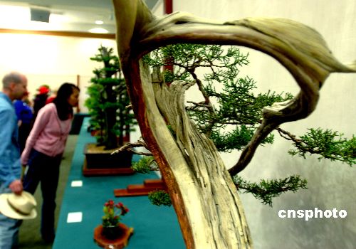 美国洛杉矶三月二十五日春暖花开,著名的杭廷顿植物博物馆举办第四十九届中国盆景展。由加州植物协会提供的一百多种中国和东方地区的展品,体现丰富的哲学思想和造型审美观,吸引许多美国观众来此赏景迎春。作者:贾国荣