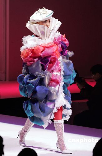 “汉帛奖”第十四届国际青年时装设计师作品大赛三月二十六日在中国国际时装周二零零六/二零零七秋冬系列发布会上举行,图为中国赴法留学生设计的作品“街道上的婚礼”。作者:毛建军