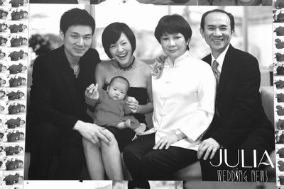 中新网3月27日电 据新京报报道,艺人小S日前在台东夫家办双满月酒,顺便补请婚宴,大摆70桌,许多圈内好友都前来祝贺。老公许雅钧在婚宴上特地播放了一段从认识到求婚、生子的VCR,让所有亲友见证了两人甜蜜的爱情。小S夫妇还在婚宴上公开了全家福照片,大家终于见到了许俏妞的真容。