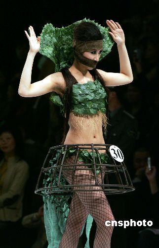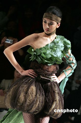 “汉帛奖”第十四届国际青年时装设计师作品大赛三月二十六日在中国国际时装周二零零六/二零零七秋冬系列发布会上举行,图为印度尼西亚设计师丹尼尔.杰伯的作品“夏娃.纯真”。作者:毛建军