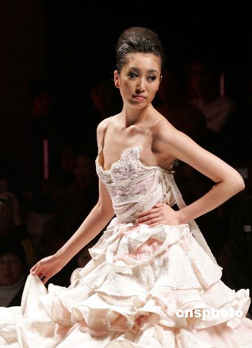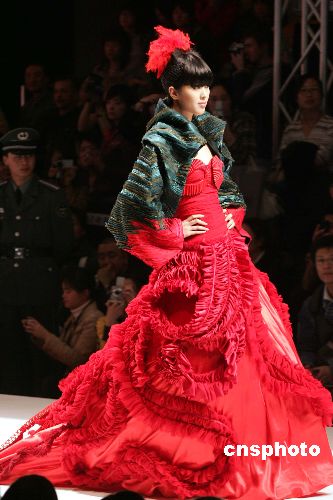 “汉帛奖”第十四届国际青年时装设计师作品大赛三月二十六日在中国国际时装周二零零六/二零零七秋冬系列发布会上举行。 作者:毛建军