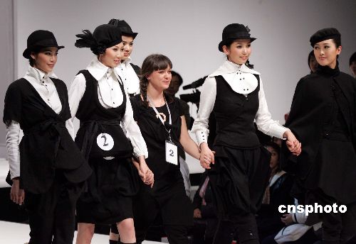“汉帛奖”第十四届国际青年时装设计师作品大赛三月二十六日在中国国际时装周二零零六/二零零七秋冬系列发布会上举行,意大利设计师克里斯蒂娜.勒琵以主题为“黑领带.白领带”的作品获得金奖。作者:毛建军