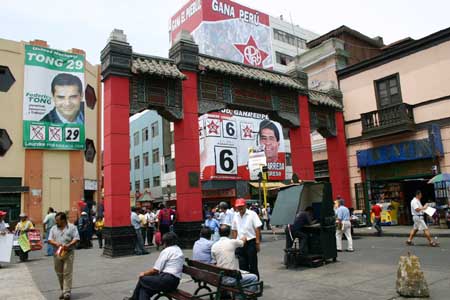 秘鲁大选日趋临近,唐人街变成了各党派争夺华人选票的重要阵地。在唐人街最抢眼的位置挂满了竞选大广告。