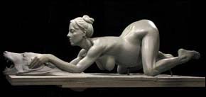 中新网3月28日电 据外电报道, 日前,以流行歌手小甜甜布兰妮为原形的一座塑像在纽约展出,引起了媒体的轩然大波。原来,这座雕塑是布兰妮全裸临盆的造型,只见有着小甜甜面孔的塑像双膝跪在地上,双乳和隆起的大肚子垂在地面上。相信布兰妮的歌迷看到后一定会为之震惊。