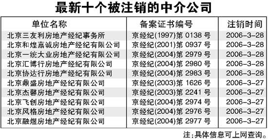 据了解,从2005年7月1日到年底,仅有100余家未达标房屋中介被注销。截至昨天,今年共有327家房地产经纪机构被注销备案。
