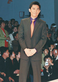 中新网3月29日电 梁朝伟前天赴北京担任某男装代言人,带着腼腆表情走秀的他,魅力横扫全场,现场相机、手机拍个不停。据台湾媒体报道,梁朝在谈到自己的穿衣哲学,表示舒服、合身,再加中西合璧的格调,就是他喜欢的现代男装,所以他拍的广告也以中国水墨画作表现,展现最迷人华人男星的魅力。