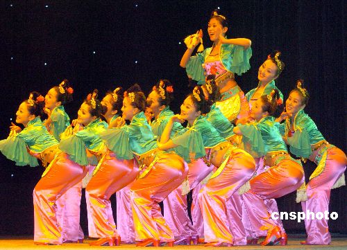 河北省目前正在香港举办贸易洽谈会和文化周﹐在28﹑29日晚的“燕赵风韵”大型文艺晚会上﹐表演河北民间歌舞“茉莉花”。作者:宋吉河