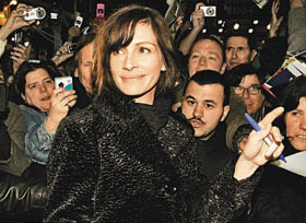 中新网3月30日电 据香港媒体报道,为了专心照顾龙凤胎而安在家中的茱莉亚·罗勃茨,自从去年开始密接工作后,前天终于登台演出,不过不是拍电影,而是担纲百老汇舞台剧《Three Days of Rain》。而前天也只属试演性质,该剧要到4月19日才正式出炉。