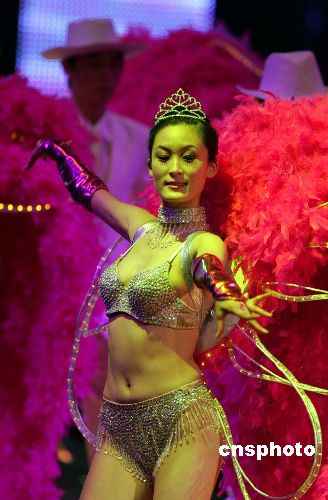 利郎二零零六Manhunt世界男模特大赛中国总决赛三月二十九日在中国国际时装周上举行,性感女郎在比赛现场表演舞蹈助兴。 作者:毛建军