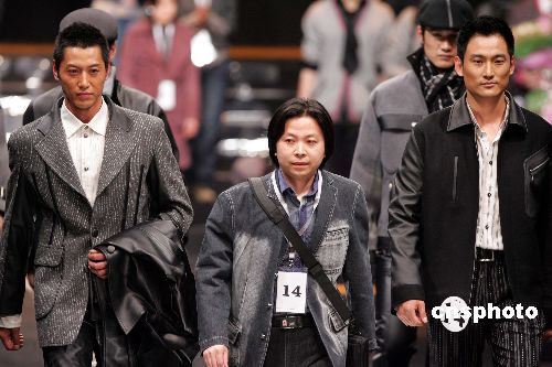 “益鑫泰”第六届中国时装设计大赛三月三十日在北京饭店举行,来自东北电力大学艺术学院的十四号选手袁大鹏设计的作品获得一等奖。作者:毛建军