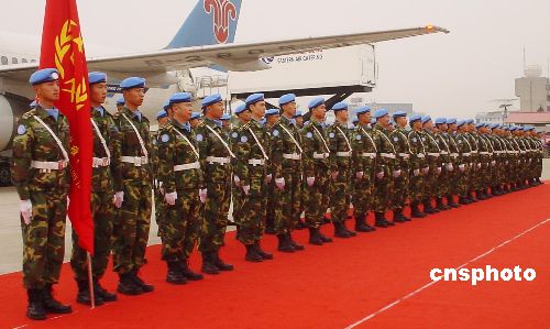 2006年3月31日8时20分,国防部维和事务办公室在昆明机场举行隆重仪式,欢送中国赴黎巴嫩维和工兵营先遣队80名官兵出征,执行联合国赋予的维和任务。这是中国第一次成建制向中东地区派出维和部队。作者:施永才