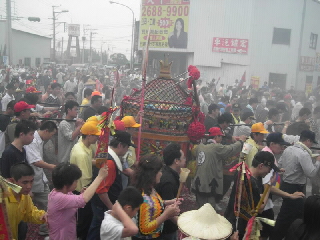 由于入城比往昔迟了3个多小时,阵头不断催促下造成人推人的场面一再上演,又乱又危险,阵头的行进非常的缓慢,处处受到阻碍,至晚间十时半许,神舆才被迎入庙大殿安座神案,由颜清标主持安座仪式后,信徒即一涌而上膜拜。