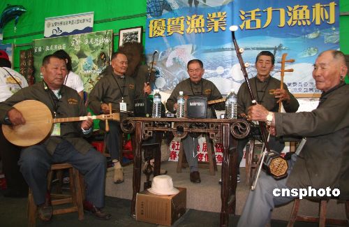 今天带领老人们来推介休闲渔业的社区发展协会总干事吴胜雄告诉记者,溪南村是台南县一个濒海渔村,五位老先生参加农展会,主要是希望通过古老的琴艺,结合溪南既有的七股盐山、黑面琵鹭、海水浴场等自然资源,吸引更多人到渔村参观旅游。“老人家为了溪南发展,都很乐意参加”,吴胜雄说。
