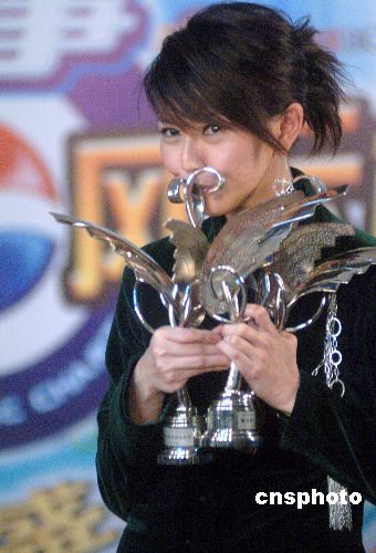 2006年4月2日晚,第六届百事音乐风云榜颁奖盛典在北京展览馆剧场举行。香港艺人孙燕姿成为当晚最大赢家,独揽了港台最佳女歌手、港台最受欢迎女歌手、三地联颁奖女歌手3项大奖。作者:张侃