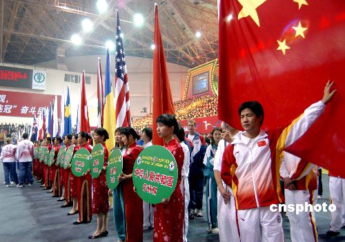 四月三日,2006年清远世界杯飞碟赛开幕式在广东省清远市举行。来自中、德、美、加等四十九个国家和地区的运动员和工作人员约五百人参加,中国国家队二十五名枪手将参与这九天的激烈争夺,角逐五个参加二00八北京奥运会飞碟赛的名额。作者:刘卫勇