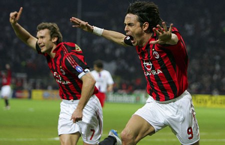 中新网4月5日电 北京时间今天凌晨,欧洲冠军联赛进行了1/4决赛第二回合的一场焦点比赛。主场作战的AC米兰队在主场实现“逆转”,以3比1击败了法甲冠军里昂队,有惊无险的率先闯入半决赛。AC米兰队前锋因扎吉先拔头筹,不过里昂队随后将比分追平,并以客场进球多占据优势。不过AC米兰在比赛的最后时刻由因扎吉和舍甫琴科各入一球,以3比1的总比分淘汰对手。