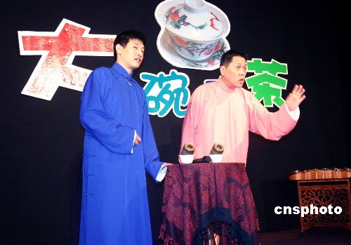 曾应邀在中央电视台春节联欢晚会演出的台湾相声演员朱德刚(右)、刘增锴,在台北曲艺团春季公演“台北大碗儿茶”中表演对口传统相声《拉洋片》。作者:耿军