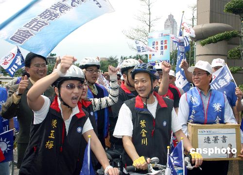 中国国民党台北市长初选登记已经开始。4月8日,叶金川以骑单车的形式到国民党中央党部报名参选台北市长。作者:耿军