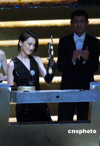 中新网4月8日电 第25届香港电影金像奖颁奖典礼于4月8日晚在香港红磡体育馆举行,周迅获得最佳女主角奖,开心落泪,在发表感言时公开感谢“我的爱人大齐,感谢她忍耐我的坏脾气”。