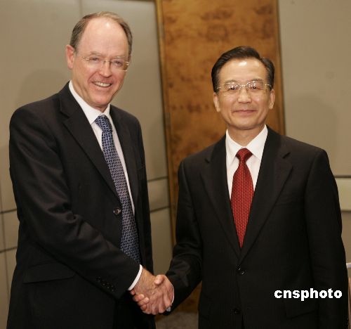 4月6日下午,国务院总理温家宝于新西兰首都惠灵顿会见了新西兰反对党领袖Don Brash博士。作者:崔萌