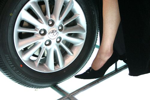 2006年4月8日,在山东济南舜耕国际会展中心拍摄的汽车模特的足下风情。当日,2006齐鲁春季车展进入第二天,由于众多厂家推出优惠措施,吸引了数以万计的市民观看。作者:希牛