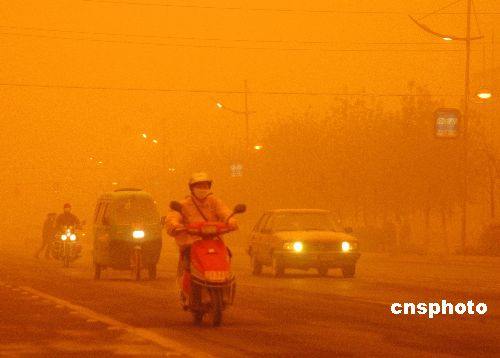 2006年4月10日,新疆吐鲁番遭遇强沙尘暴袭击,沙尘遮天蔽日,空气中弥漫着浓浓的呛人味道,天空呈现橘红色,车辆不得不开着大灯慢慢行驶。据当地气象和环保部门信息,这次强沙尘暴是受西西伯利亚强冷空气入侵和当地干旱少雨的影响形成的,监测数据显示空中总悬浮颗粒物浓度为19.85mg/m3,能见度在5米左右,创历史最高。这次强沙尘暴对人们生活和农作物生长产生不利影响。作者:刘健4509