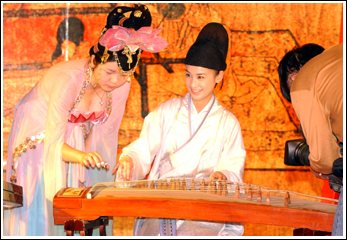 昨日的西安天气大热,仕女馆长廊上,“宫女”们横七竖八睡倒了一片,她们相互调侃:好在我们是在演戏,真正的宫女要敢这副模样,早让撵出去了。再看看,“大臣”、“贵族”、“侍卫”、“骚客”、“嫔妃”等一干人等早没了刚才舌战的慷慨激昂,纷纷歪倒在斗诗会那巍巍高台上。一个演员还向记者大爆黄圣依和杨子的“亲密内幕”,令记者哭笑不得。 (记者职茵)