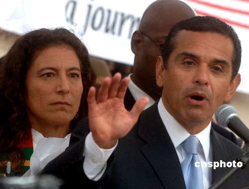 洛杉矶市长参加大游行说自己没忘本。作者:贾国荣