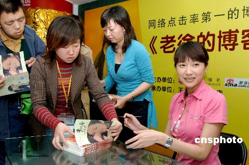 四月十一日,徐静蕾的博客新书在北京王府井书店举办签名会。影人徐静蕾、地产商潘石屹、作家郑渊洁纷纷通过博客与出版界携手。近来在网上异军突起的博客阵营,将成为出版界自“网络文学”之后的又一块“风水宝地”。作者:韩艺冰
