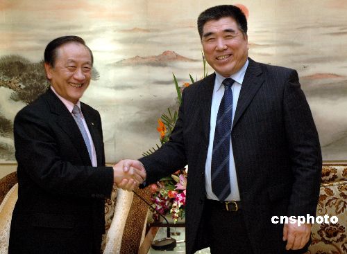 图:郁慕明来豫参加投洽会 与河南省长李成玉会见