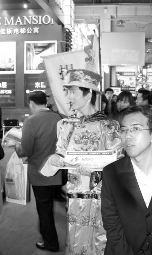一个以江南为主题的项目又是请来老艺人拉洋片,又是请来演员扮成皇帝皇妃发资料,喧天的锣鼓声吸引记者上前探访,价格是7500元一平方米,询问的人并不多。