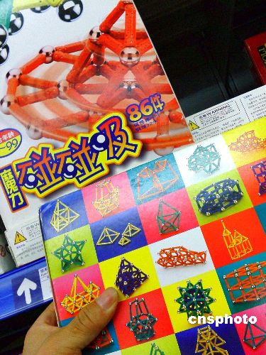一款在中国与美国均有出售的磁性积木玩具,成为儿童的夺命陷阱。推出该玩具的加拿大玩具商MegaBlok日前下令召回380万份从中国进口的玩具,Magnetix磁性积木是益智类玩具,2003年9月上市后风靡全美。据悉,该玩具在美国共发生34宗意外。据了解,上海一些儿童玩具销售场所,发现都有类似的磁石拼装玩具销售。作者:井韦