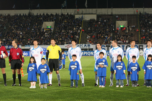 4月12日晚,2006亚冠联赛E组进行了小组赛第三轮角逐。结果,在中超冠军和日本J联赛冠军的强强碰撞中,拥有主场之利的大阪钢巴凭借下半场的三个进球,以3∶0完胜作客的大连实德,从而在积分榜上追平大连。大阪地区的中国留学生组织声势浩大的拉拉队为大连实德队加油。(日本《关西华文时报》供图)