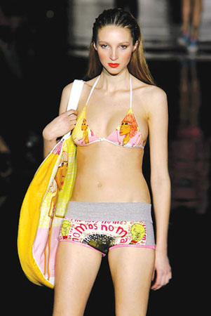 度假风格在2006年春夏成为众多顶尖品牌共推的风格,这种盛行于时装舞台的风格也反过来深刻地影响着泳装的设计,甚至在泳装中达到了一个顶峰。今年春夏,具有代表性的度假风格泳装图案是条纹与圆点,条纹的伸张力和圆点的爆发力为度假风做了恰到好处的诠释。