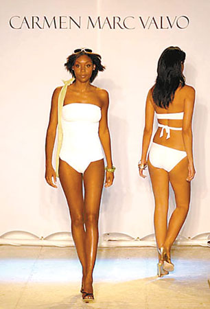 中新网4月13日电 据广州日报报道,早在上个季末各大时装周发布2006年春夏时装上,Gucci、JeanPaulGaultier等国际大品牌和设计师便已经将精心设计的泳装新款呈现于观众面前。随着夏天的临近,从近期巴塞罗那、里约热内卢的泳装秀上看到,今年春夏的泳装新品更加年轻化,其中,年轻美眉热爱的清纯、度假、丛林以及乡村这四大风格的泳装备受关注。