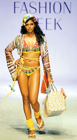 今年春夏,设计师受到了非洲、印度民族服装特色的影响,纷纷推出了充满热带丛林风情的泳装。