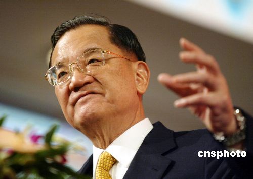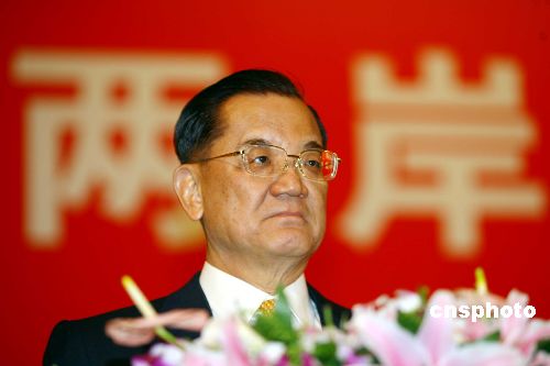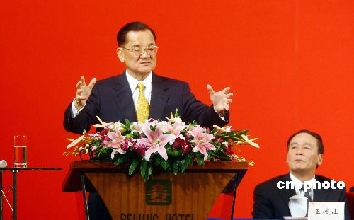 图:连战在两岸经贸论坛开幕式上发表演讲