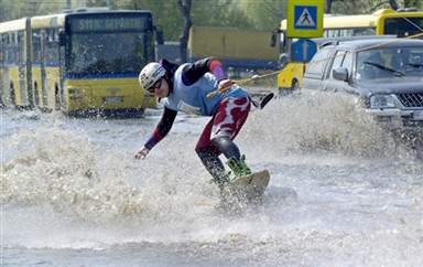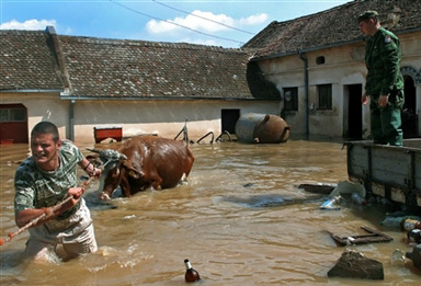 中新网4月15日电 据法新社15日报道,肆虐的洪水淹没了塞尔维亚北部的数百公顷农田,并使贝尔格莱德附近地区的数百个家庭无家可归。一名塞尔维亚农民在距贝尔格莱德以东80公里的斯塔里科斯托拉克村从被洪水半淹的牛栏里救出一头母牛。由于萨瓦河和多瑙河的水位出现自1981年以来的最高水位,塞尔维亚当局已宣布采取紧急防洪措施。(春风)