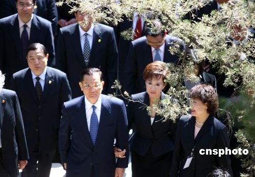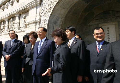四月十五日,中国国民党荣誉主席连战在北京香山碧云寺向孙中山像敬献花环,并拜谒孙中山衣冠冢。作者:盛佳鹏