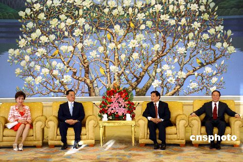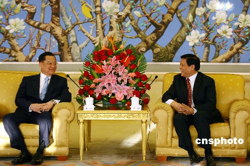 四月十五日,中共中央政治局委员、北京市委书记刘淇在北京会见中国国民党荣誉主席连战。作者:盛佳鹏