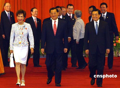 四月十六日,中国共产党中央委员会总书记胡锦涛,在北京人民大会堂会见中国国民党荣誉主席连战。作者:盛佳鹏