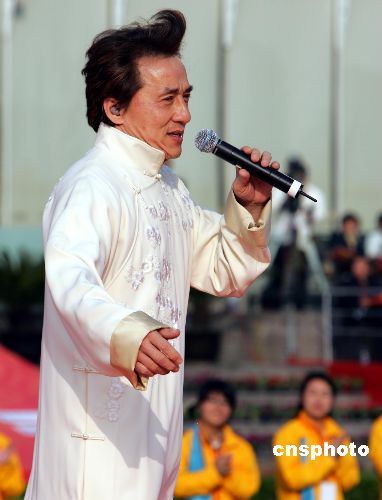 四月十六日,“龙耀浦江”两岸四地青年大型交流活动在上海举行。香港影星成龙特意赶来,参加在黄浦江畔举行的千人共舞“中华巨龙”的活动,并为大家献歌助兴。作者:汤彦俊