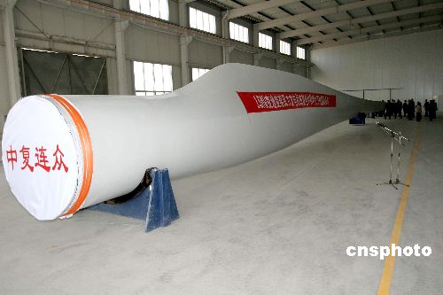 4月16日,由江苏连云港中复连众复合村料集团有限公司研发生产的1.5MW风力发电机风轮叶片下线。该电机风轮叶片长37.5米,最大弦长3.2米,重量为5800公斤,产品全部采用德国工艺生产,是目前国内最大的风力发电机风轮叶片。该叶片的成功研发不仅填补了国内同行业空白,也打破了以往风力发电机风轮大叶片依靠国外进口的格局。作者:穆道勇