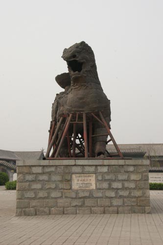 中新网4月16日电 第四届“网上河北行”网络媒体采访团今天走访了蜚声海内外的“狮城”沧州象征、同时也是我国最大的铸铁文物——沧州铁狮子。